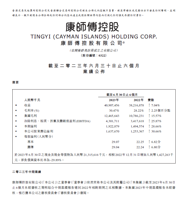 8月22日,康师傅发布中期业绩报告显示,公司在长期主义的发展理念下,业绩稳健增长,具备较强的经营韧性。