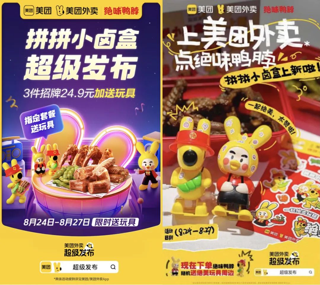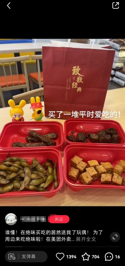 这种有层次、有节奏的传播,不仅兼顾了内容的趣味性和价值性,也在碎片化的传播环境中吸引了更加持久的注意力,让品牌表达更加完整。而且对于大部分消费者来说,卤味食品和外卖平台本身都没有那么感性,但是有了联名玩具和年轻化玩法的加持,越来越多的消费者也能感知到产品在功能属性以外的情绪价值,拉近彼此的沟通距离。