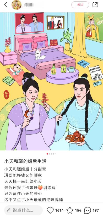 预热阶段,品牌通过Citywalk海报,用户在这段故事中感受有绝味鸭脖陪伴的长沙漫游的美好。在引爆期,social video、小红书笔记、趣味表情包、线下主题店等内容同时上线,讲述了“绝美CP”的人设与性格。在联名故事中,穿着背带裤的阿伍和背着毛豆包的团团一拍即合,成为这条街上最靓的“显眼包”好朋友。合作双方自带的影响力,让联名内容快速辐射各圈层人群,围绕受众喜好打造的趣味内容,也撬动了网友们的传播热情,让话题在社交平台的互动中持续破圈。