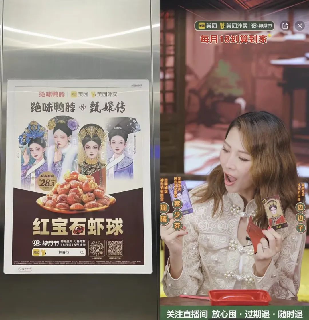 在前不久的18周年庆中,绝味鸭脖结合平台超品日资源及神券节资源双重加持,打造了为期5天的品牌大促。而在与《甄嬛传》的梦幻联动中,绝味鸭脖也配合平台神券节天王席位、首页一拖二资源以及明星直播互动,打造了站内流量高峰,掀起了一波打卡“绝味红宝石虾球”、抽联名盲卡的热潮,成功抓住了一轮新的增长机会。