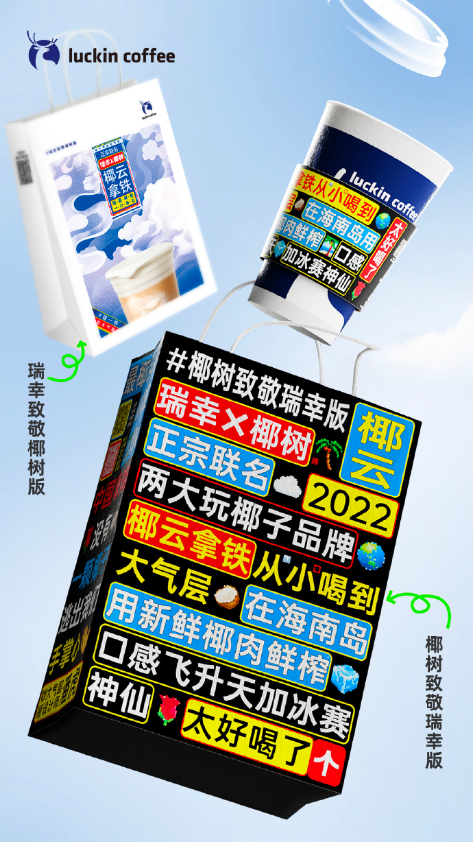 二是瑞幸的门店优势。瑞幸在全国有超过1万家门店,将产品连同包装袋在全国一铺,其曝光量远胜于很多品牌的投放量。这一点其实拥有门店或经销商优势的品牌都具备。