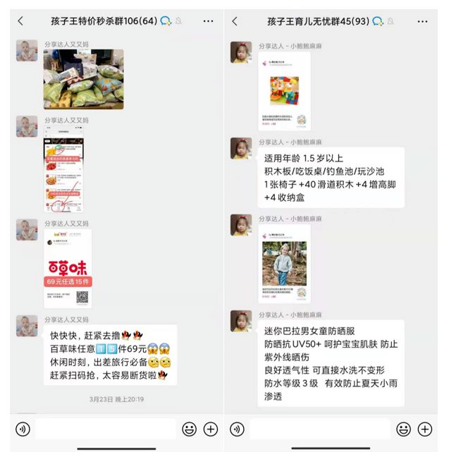 在线下推广积累大批宝妈粉后,再将它们按一定标准分配在宝妈群里,此时推广裂变活动,说明利益点,获取一部分宝妈用户作为KOC为品牌拉新、推广产品。