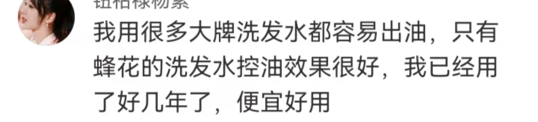 他家的护发素真好用,可以平替很多大牌了。只有蜂花的洗发水控油效果好,便宜又好用,用好多年了。