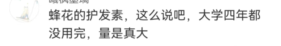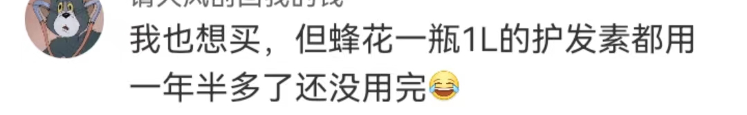 还有网友调侃,本来想买,但一瓶护发素用一年半多了还没用完。甚至有网友大学四年都没用完。