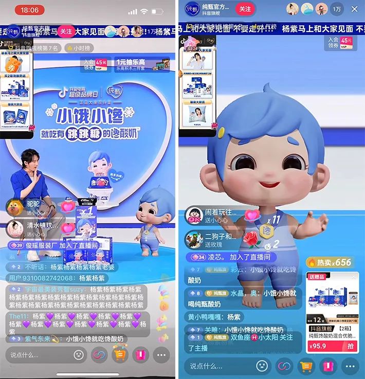 同时,在小馋孩首度亮相的虚拟直播中,推出一系列助力销售的创意礼盒,并经由KOL话题种草引发全民参与抖音任务,把品牌官宣代言人的单向输出,变成了多方对话。成功吸引消费者注意力的同时,多渠道融合传透了解小馋的IP形象与产品卖点。