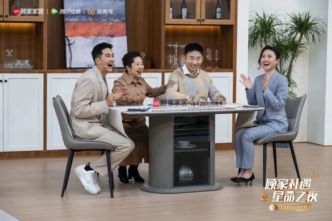 顾家的这个“综艺式直播”实际上是和腾讯联手定制出来的一个项目。顾家不仅要打通朋友圈——视频号——直播间——小程序的生意闭环,还要借助腾讯视频在综艺领域里的产业资源,帮助自己洽谈明星、布置场景化的舞美、设计综艺脚本和流程。