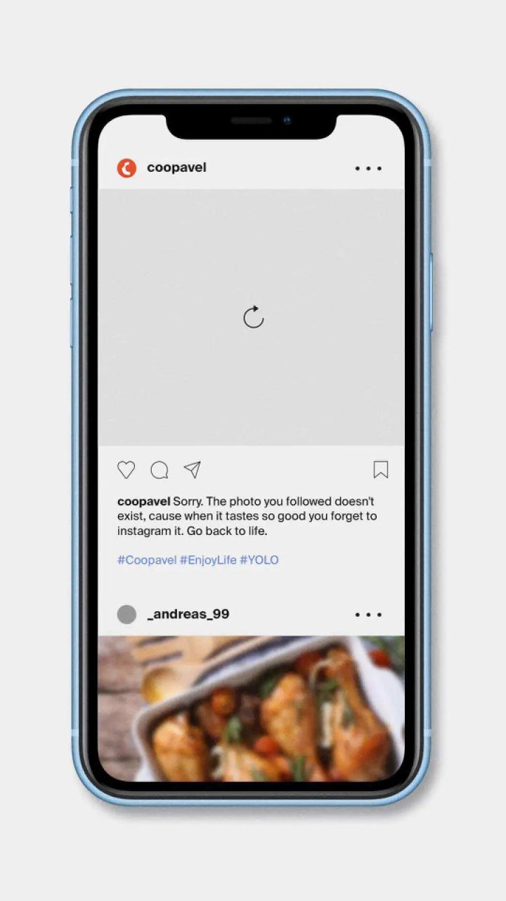 巴西食物品牌Coopavel也曾聚焦大家“手机先吃”的社交习惯,用恶搞Instagram用户界面的反骨海报,呼吁大家“回到生活中”享受食物本身,而不是被朋友圈所绑架。