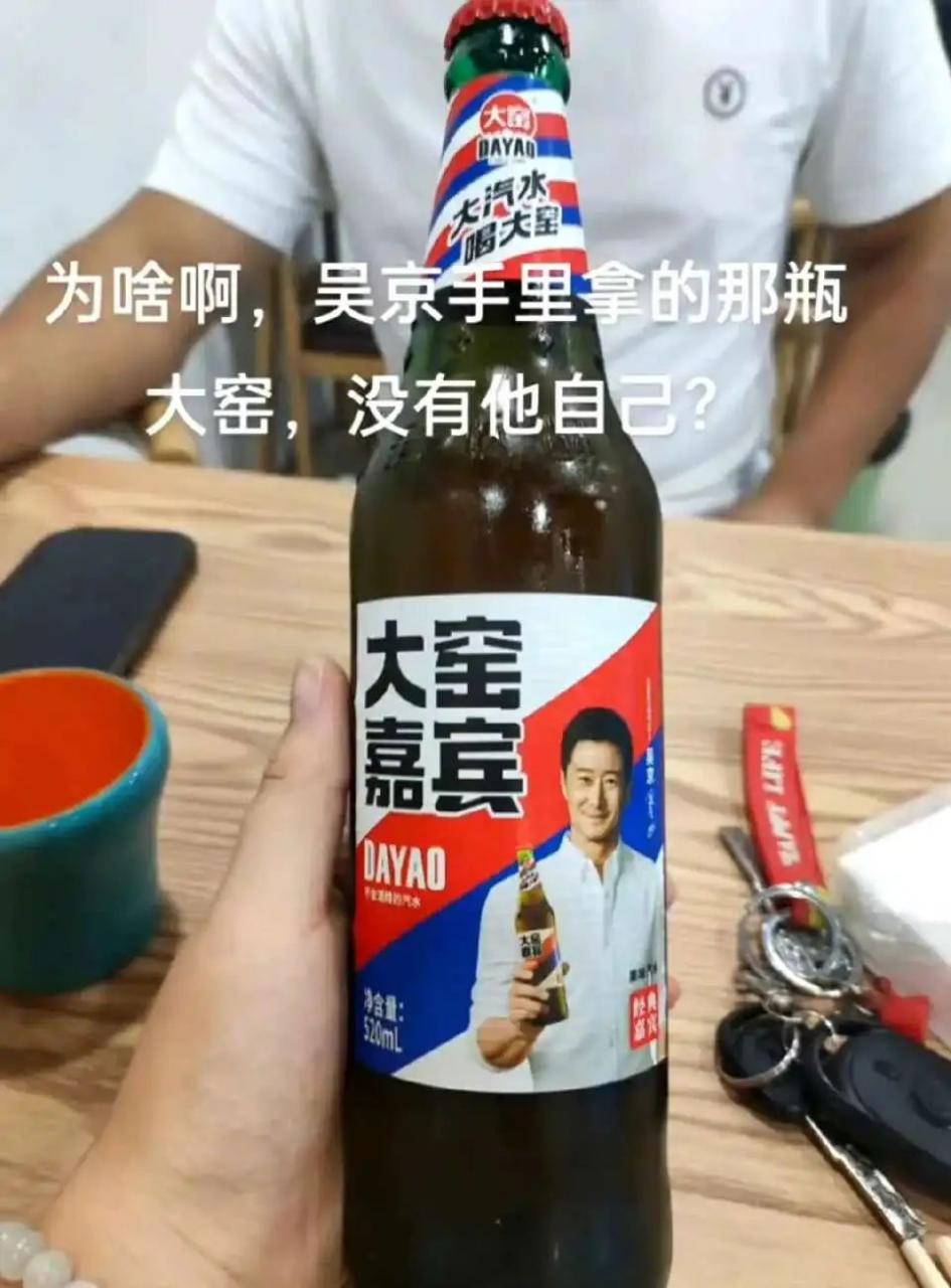 细心的网友面对吴京代言大窑汽水的海报真诚发问:“为什么吴京自己手上拿的汽水没有印吴京?”