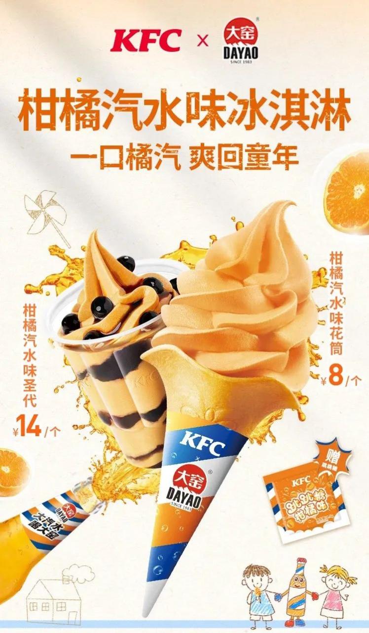 8月,大窑首次联名肯德基,推出柑橘汽水味冰淇淋,复刻大窑最经典的橙诺橙味汽水,肯德基全国门店同步上市,这一波童年的回忆杀,直接打在了年轻人的心坎上,想不支持都难。从联名的结果来看,肯德基赢得了销量,大窑创造了与更多消费者见面的机会,让大家真正品尝到汽水的味道,妥妥双赢。