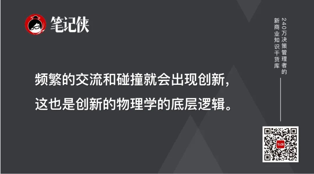 频繁的交流和碰撞就会出现创新,这也是创新的物理学的底层逻辑。