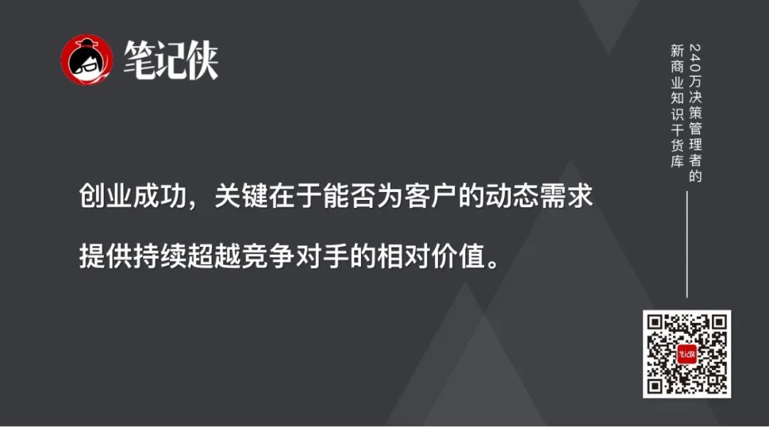 总之,创业成功,关键在于能否为客户的动态需求提供持续超越竞争对手的相对价值。这就是客户价值领先战略。