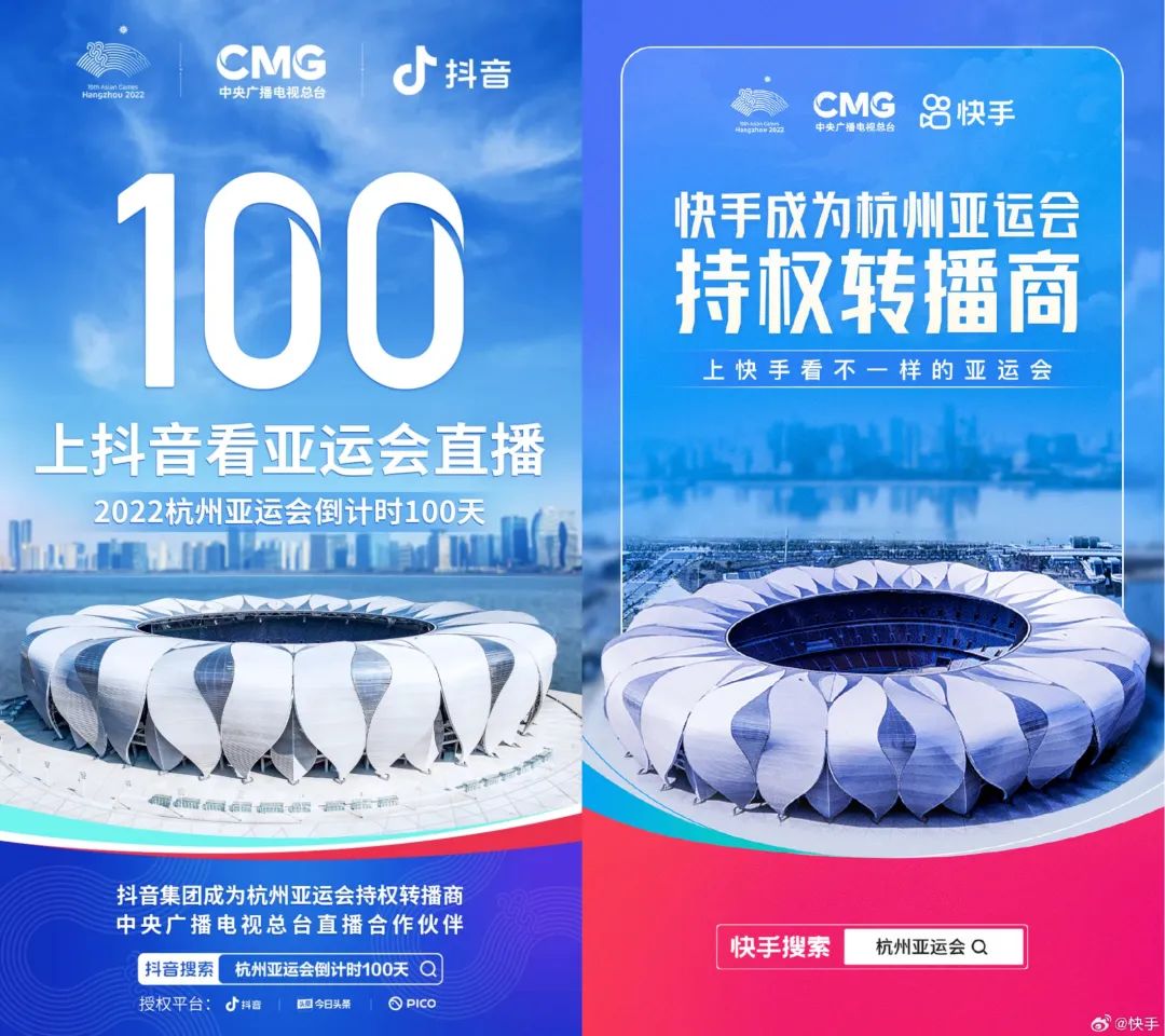 此前,快手取得了2020东京奥运会和北京2022年冬奥会转播版权,还和NBA、欧冠等国际性重要赛事达成版权合作;抖音不仅承包了东京奥运会和北京冬奥会的赛事转播,还在去年成了卡塔尔世界杯的持权转播商。到了今年亚运会,抖音和快手相继与中央广播电视总台达成合作,获得转播身份,两家转播的版权内容大致相似,只不过快手要多一个“官方指定短视频分享平台”的头衔,也就意味着不少亚运会短视频、花絮会在快手呈现。