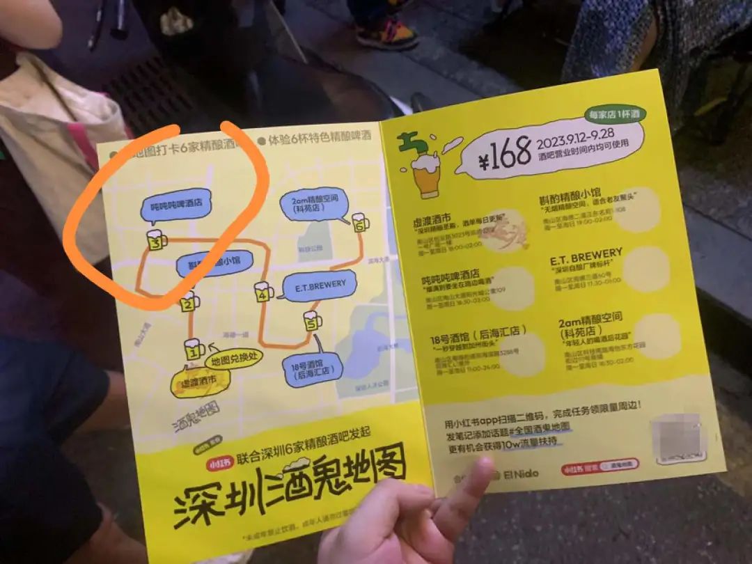 举个发生在我身边的例子,我楼下有两家精酿酒吧,今喜和吨吨吨,前者平常客流远超后者,但后者近期参加了小红书周末主推的#全国酒鬼地图#活动,成为#深圳酒鬼地图#的其中一家打卡点。