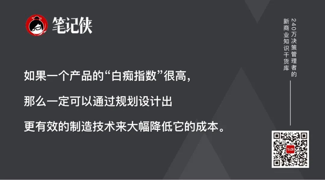 如果一个产品的“白痴指数”很高,那么一定可以通过规划设计出更有效的制造技术来大幅降低它的成本。