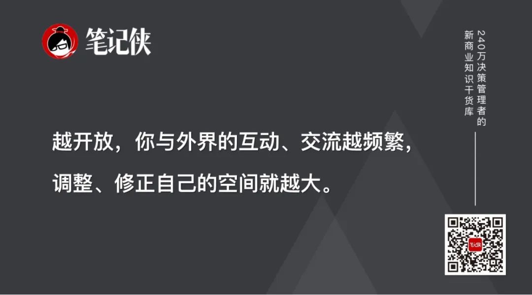 简单来说,就是越开放,你与外界的互动、交流越频繁,调整、修正自己的空间就越大。