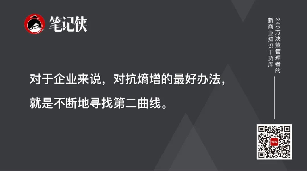 对于企业来说,对抗熵增的最好办法,就是不断地寻找第二曲线。