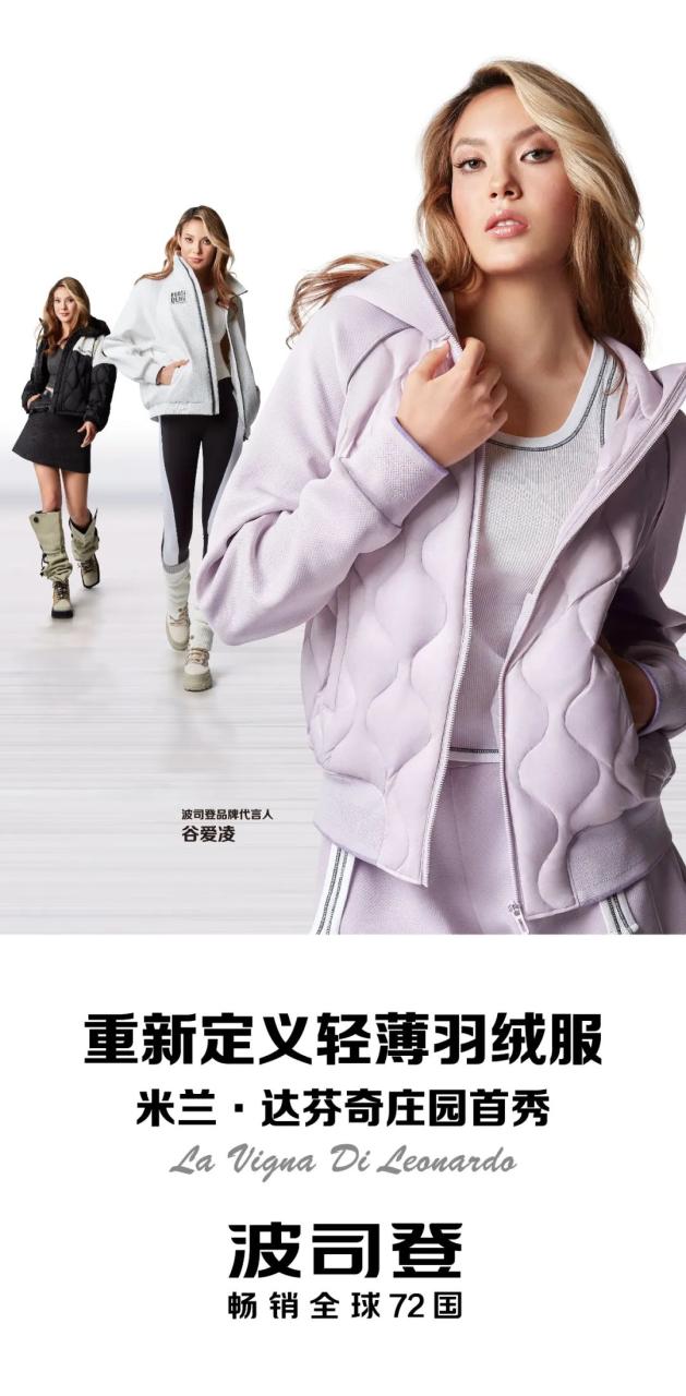 最近,在位于意大利米兰的达芬奇庄园,波司登用一场精彩绝伦的大秀将经典再颠覆,再次重新定义了轻薄羽绒服,并由波司登品牌代言人谷爱凌与国际超模 Coco Rocha、著名超模胡兵等同台演绎带来新品的全球首秀。