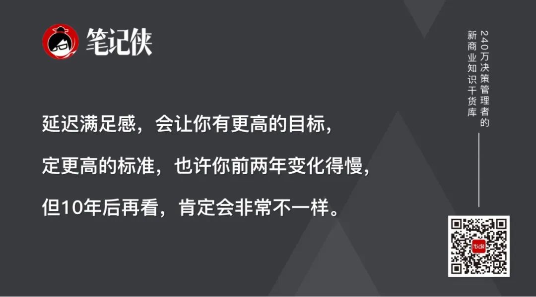 而延迟满足感,会让你有更高的目标,定更高的标准,也许你前两年变化得慢,但10年后再看,肯定会非常不一样。