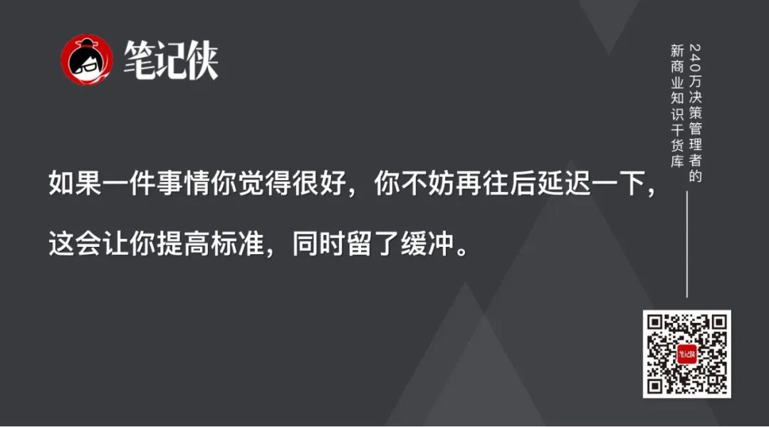 “延迟满足感”是张一鸣推崇的准则:“如果一件事情你觉得很好,你不妨再往后延迟一下,这会让你提高标准,同时留了缓冲。”