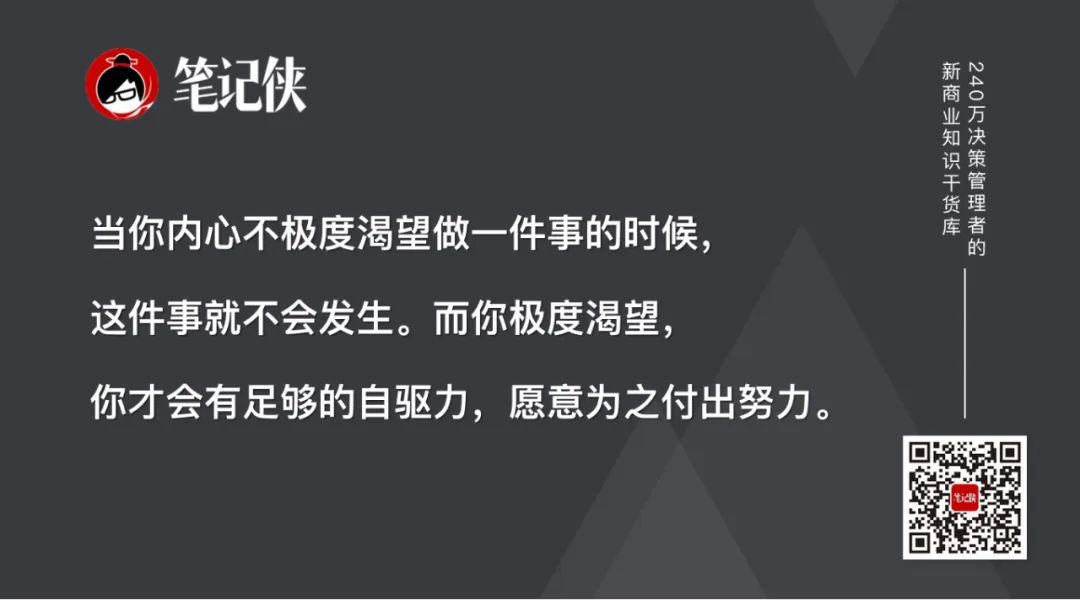 当你内心不极度渴望做一件事的时候,这件事就不会发生。而你极度渴望,你才会有足够的自驱力,愿意为之付出努力。