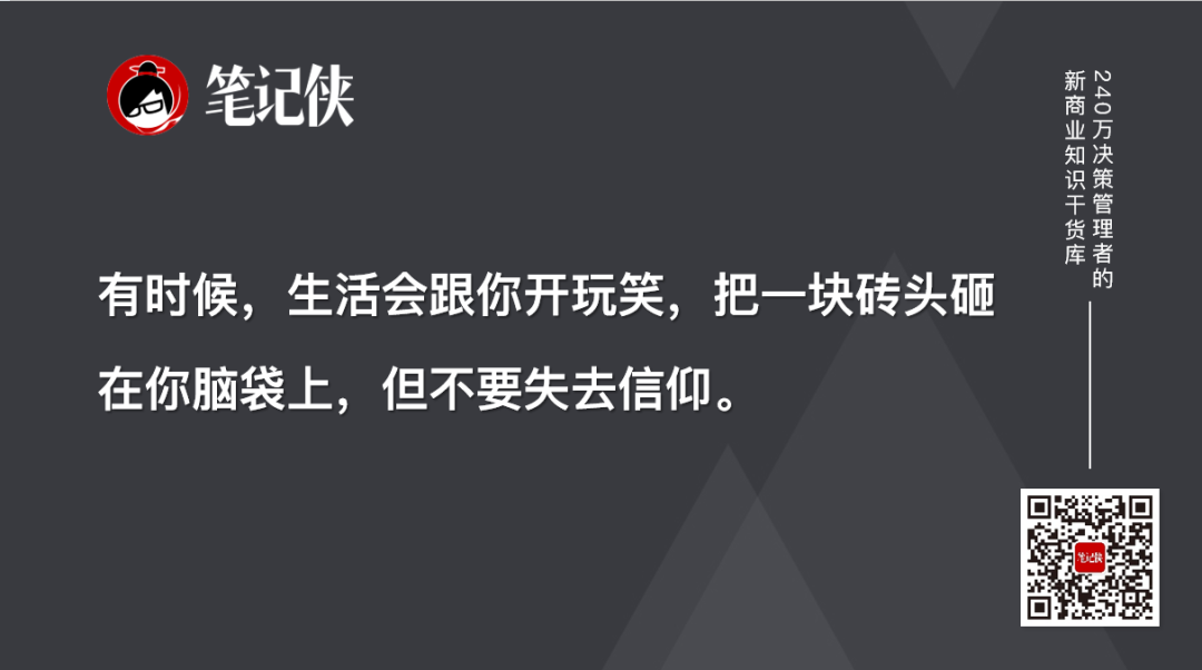有时候,生活会跟你开玩笑,把一块砖头砸在你脑袋上,但不要失去信仰。