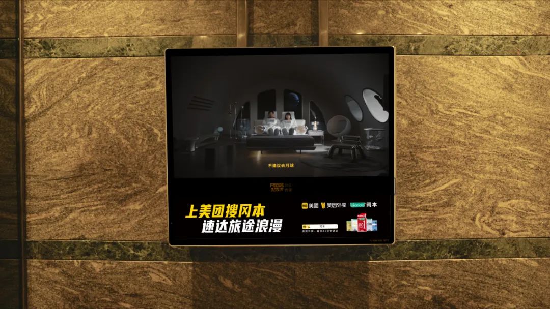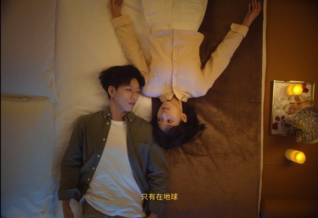 就在观众惋惜浪漫之际,情节开始反转。两人向窗前走去,望向地球,一道黄色光流掠过窗外,切换地球酒店场景。男女主惬意地躺倒在地球度假酒店床上,忽然扭头相视默契一笑。美团外卖小哥秒变“救场英雄”,直接将冈本送到地球酒店,最快30分钟,速达浪漫。