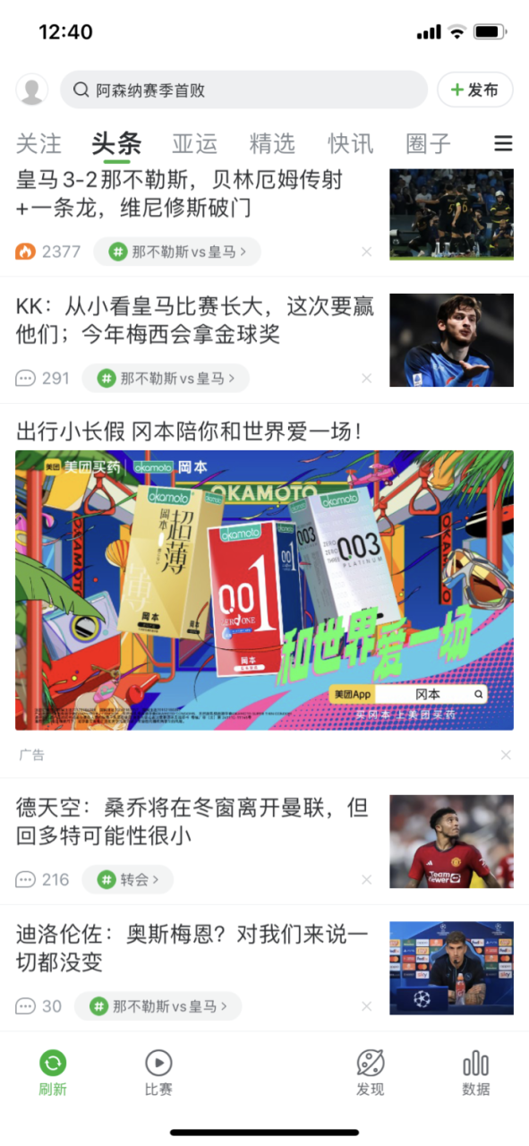 在中秋十一假期期间,冈本在出行场景高频使用的app抖音、b站、朋友圈以及男性垂类渠道懂球帝进行广告投放,汇聚不同app渠道流量,扩大传播矩阵,提升品牌曝光度。