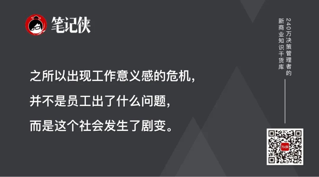 之所以出现工作意义感的危机,并不是员工出了什么问题,而是这个社会发生了剧变。回想我们父母的年代,他们当医生、老师、警察,都有明确的社会评价,大家知道做这些职业有怎样的社会价值。