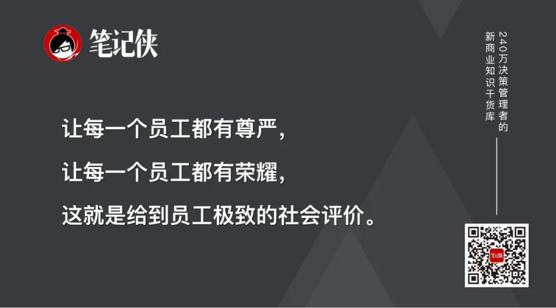 通过小册子让每一个员工都被看见,哪怕他是一个保洁阿姨,让每一个员工都被称赞,哪怕他是一个在广场上风吹日晒的保安,让每一个员工都有尊严,让每一个员工都有荣耀,这就是给到员工极致的社会评价。