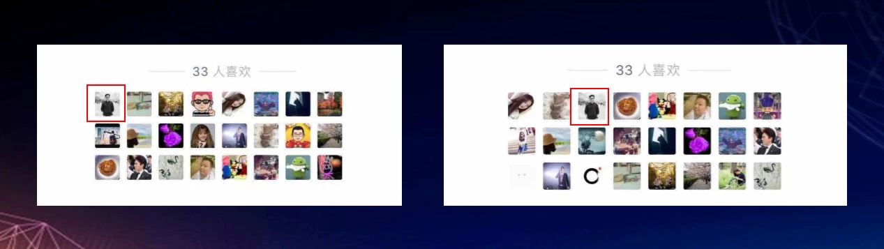 而微信在这个方案上的设计就很巧妙,在保持赞赏者本人始终处于第一的情况下,对于后面的赞赏者,最多展示 24 个头像,同时告诉你总共有多少人赞赏了。