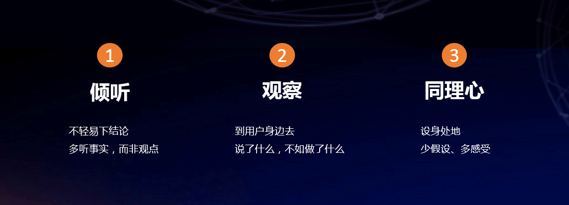 首先是倾听,面对需求方,不论是用户还是运营还是工程师,首先做到先听,这是放下自我做产品的前提。