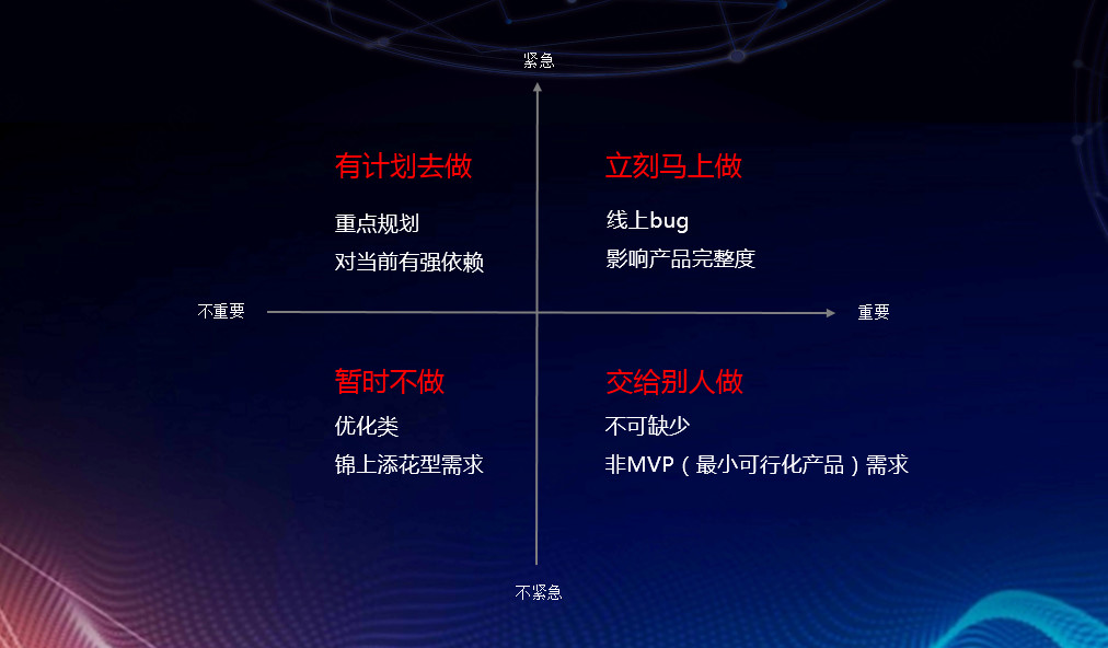 比如原本重要不紧急的需求,就会因为外部环境的调整变成重要且紧急的需求。
