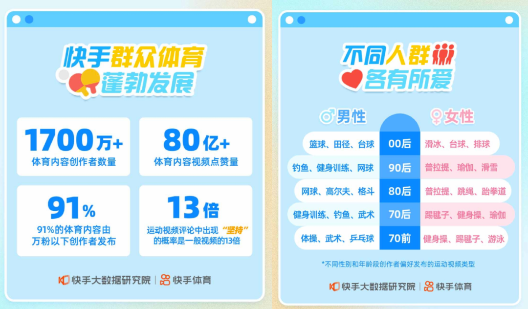 不只有基因驱动,选择顶级赛事和大众体育运动两手抓,也是快手内容生态的精细化运营发展的必经之路。