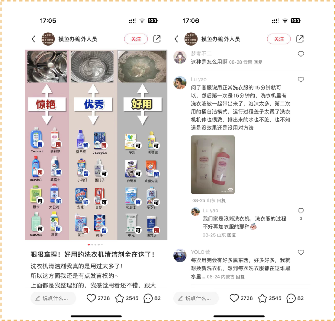 用户似乎很少在笔记正文和中的洗地机方面发表评论,这些部分似乎没有引起太多关注。相反,用户更集中在要求分享与洗地机相关的辅助信息,如链接到附属产品或绿叶配件的信息。