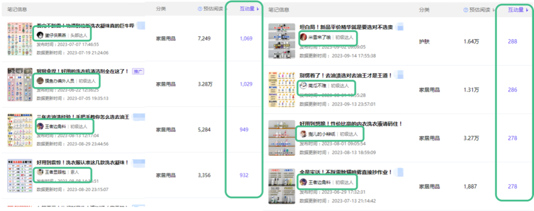 从互动量的角度来看,仅仅在前三页,单篇笔记的互动量也不足300,而我们所选的这篇高赞笔记在他们的互动量排名中仅位列第二。