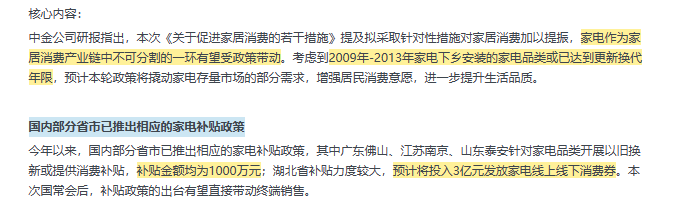 今年,受2009-2013年家电下乡安装的家电品类或已达到更新换代年限,也将带来一波增量。