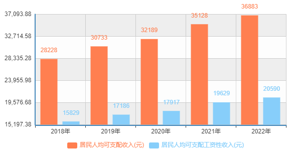 ③我们近五年居民人均可支配收入呈现上升趋势,2022年已达到36883元,这也是消费升级背景下,消费者需求得以满足的基石。