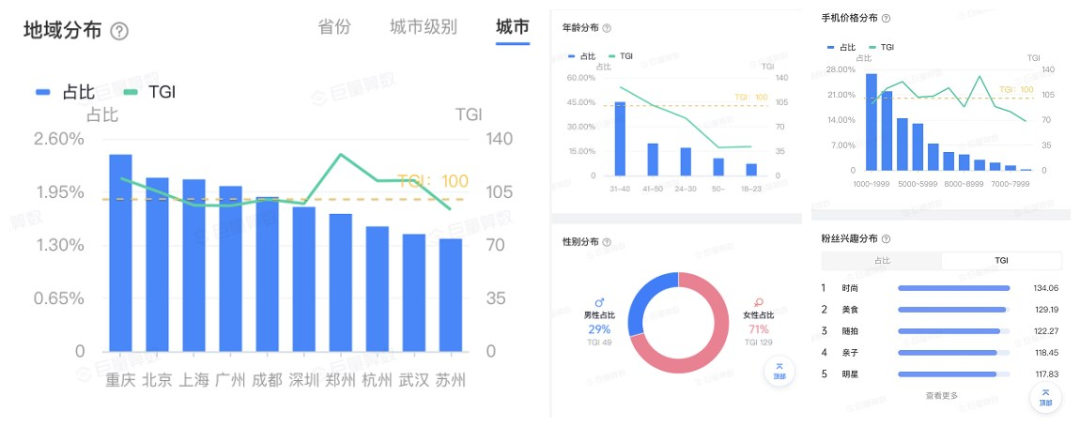 - 兴趣偏好:时尚 美食 随拍 居多;