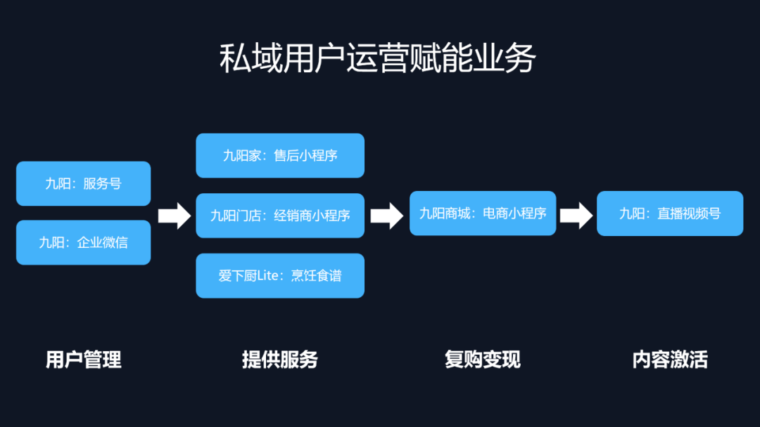 - 私域运营以官方号为主,并协同多个微信小程序实现多场景服务任务;