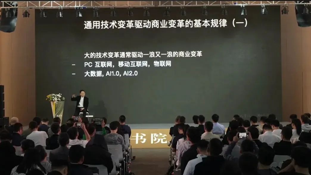从另外角度来看,通用智能的时代也可以说成是机器人的时代,因为AI是大脑,它和各种硬件的结合就是各种机器人。比如说自动驾驶,自动驾驶的车,就是一个机器人,特别是未来的Robotax公司,本质上就是一个技术外包服务公司。从这个角度来理解,就会对技术,对商业,到底产生什么样的影响,有个更本质的体会。