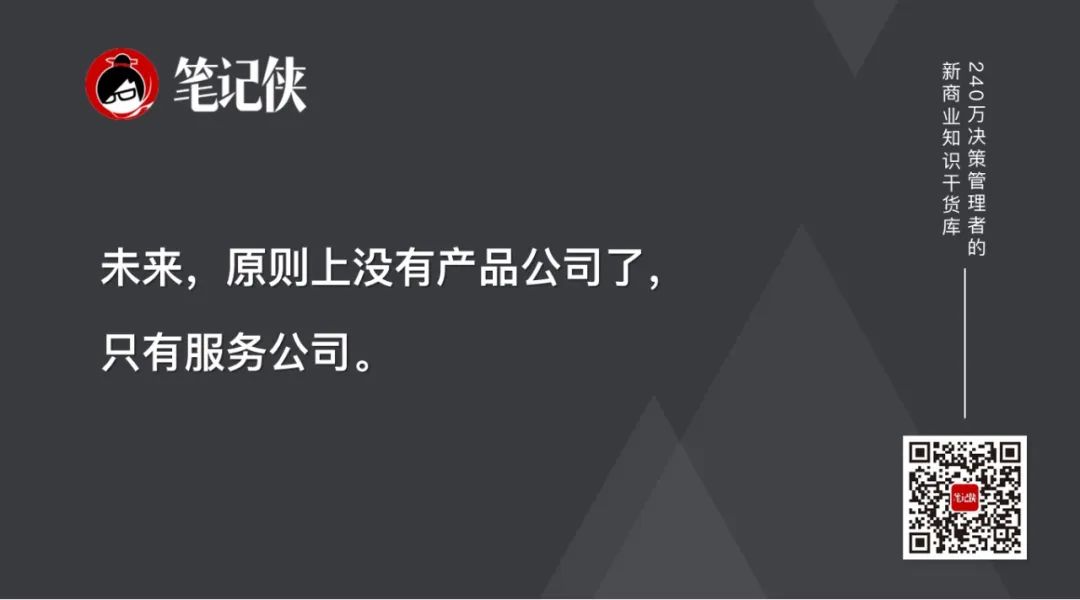 未来,原则上没有产品公司了,只有服务公司。产品只是解决那个场景下需求的一个服务的工具和载体。
