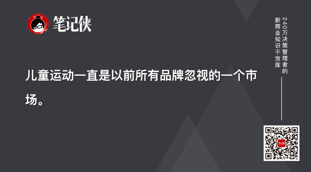 另外,儿童运动一直是以前所有品牌忽视的一个市场。