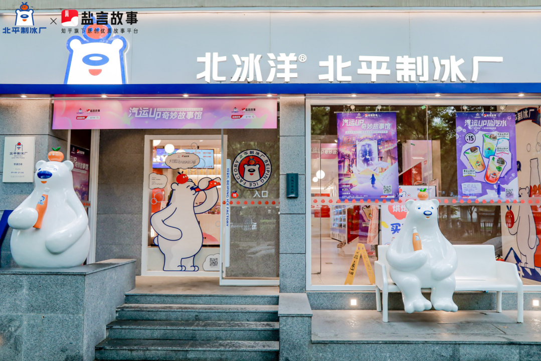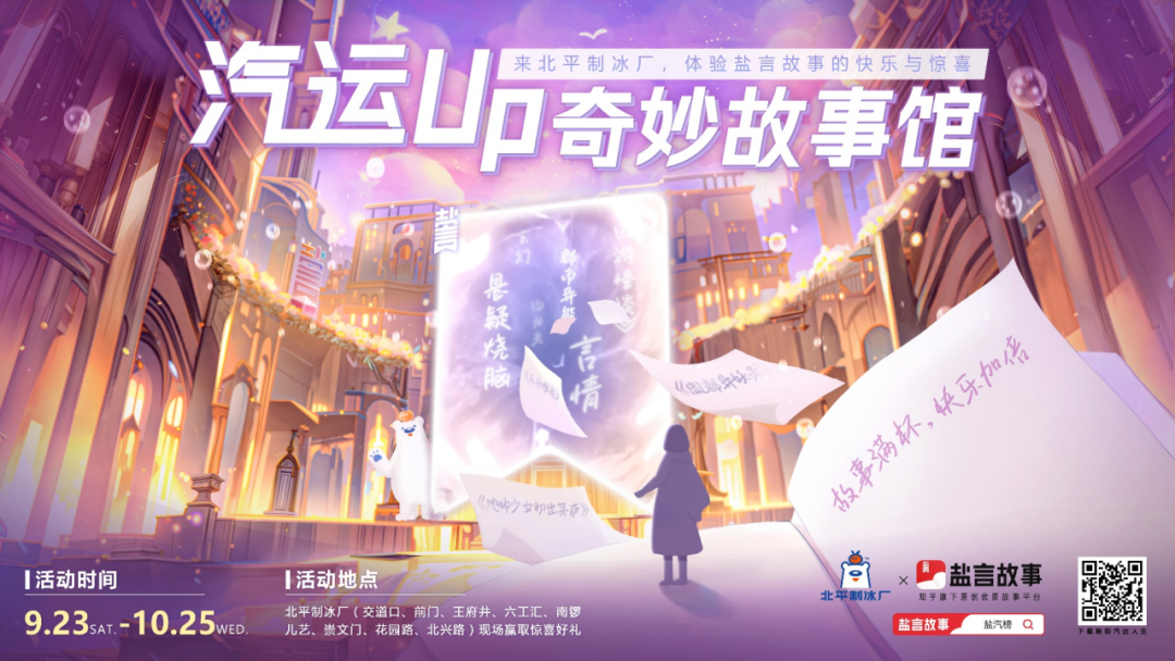 在整个联名中,除了最核心的一环“汽运 UP 盐汽水”之外,盐言故事与北平制冰厂在期间还推出拥有更加丰富玩法、与双方品牌关联度更高的“汽运UP奇妙故事馆”北京交道口线下主题包店活动,邀请大家进店享受快乐与提升汽运。