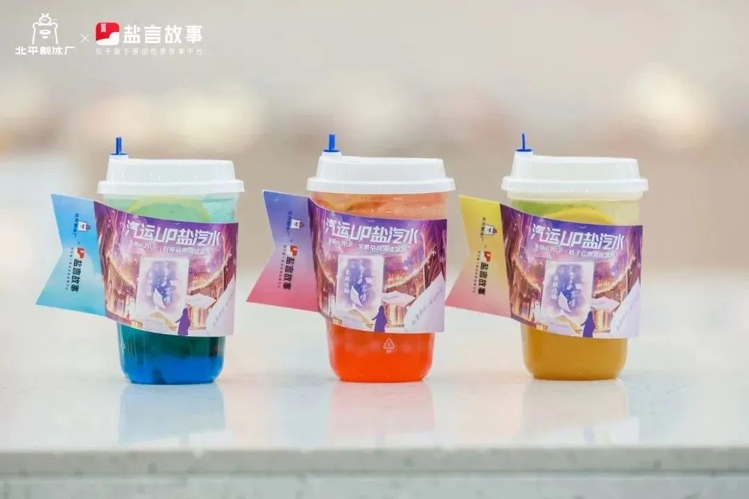 那就是盐言故事与国潮品牌北平制冰厂的联名事件“汽运UP奇妙故事馆”以及推出的联名饮品“汽运UP盐汽水”。