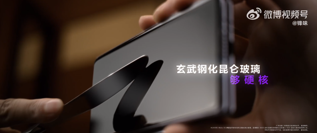 在打斗中,谢霆锋使用华为Mate X5典藏版的玄武钢化昆仑玻璃外屏,抵挡了餐刀的致命一击。