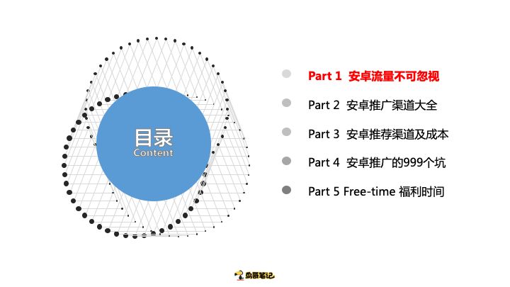 今天分享五个环节,第一个是为什么我说安卓流量那么不错,第二个现在整个市场上主流的安卓推广可能会有哪些渠道和手段,第三个同步一下安卓应用市场现在推广获客APP端的成本情况,第四个说一下自己踩过的坑,最后是福利时间。