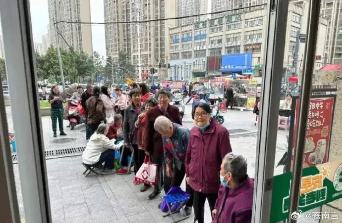 从网上的照片来看,确实有不少大爷大妈排队。