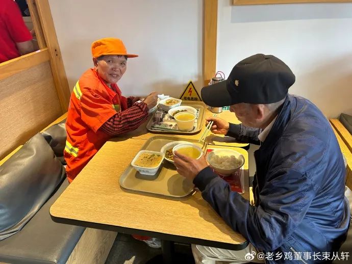 2、环卫工人和外卖小哥吃到了免费午餐,高兴。不区分任何人是不想太功利。