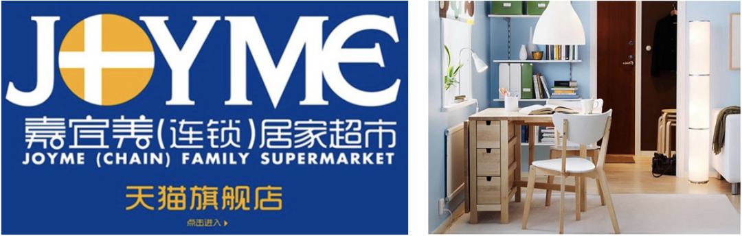 曾经,有个淘宝天猫商户叫“嘉宜美”,它的广告语是“曾为世界第一家居卖场代工16年”(暗戳戳,其实就是指的宜家),然后它的线上线下店从内容到形式都模仿宜家的风格(甚至包括蓝黄配色)。这个牌子正是宜家的十几家代工厂在2012年联手推出的。据说上线10天内破百万销量,战略目标是“在2015年前通过产业链整合、特许模式迅速布局,塑造中国居家超市第一品牌”。后来,这个牌子在2012年后就销声匿迹了。