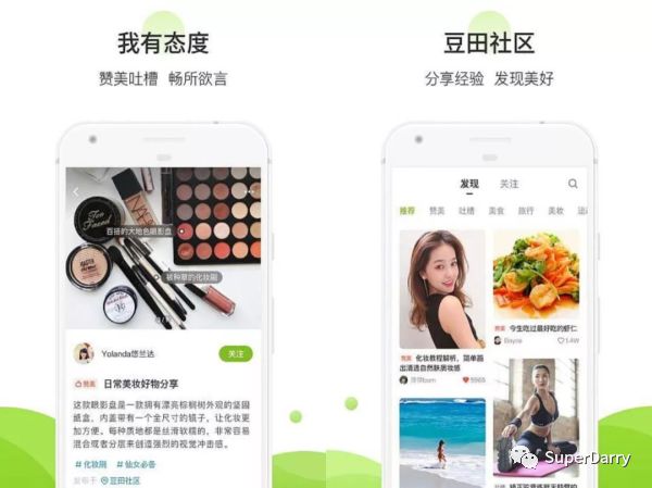 18年下半年,快手“老铁”直播带货的势头正盛、商业化的步伐日渐加快。与此同时快手也快速试水了一款“类小红书”产品——豆田社区。豆田上线后以较为小清新的调性独立运营。发现页有旅行、美食、美妆育儿等垂直类目,瀑布流的内容编排方式与小红书很相似,内容也叫“笔记”。